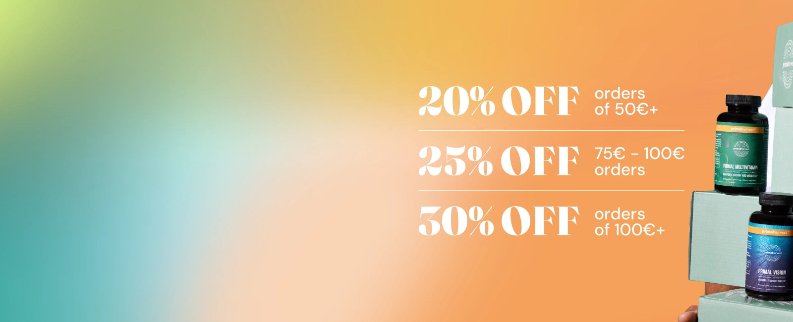 Primal Harvest X Black Friday. Nutze den Code BF25A.